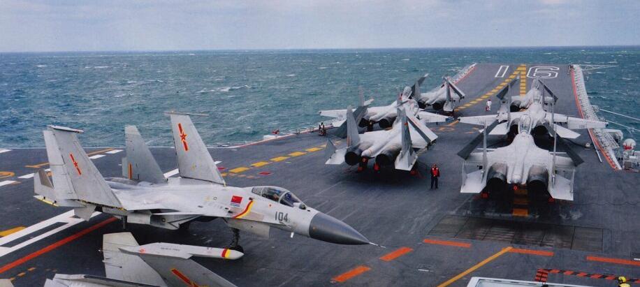據報道,在此次遼寧艦編隊遠海訓練中,多批次殲-15艦載戰鬥機從遼寧艦飛行甲板起飛昇空,開展了空中加受油、空中對抗等多項訓練任務。在媒體公佈的圖片中,有一張圖片顯示數架殲-15在航母起飛位上排成兩列長隊,有分析認為這意味着我海軍駕馭航母的能力已經更上一層樓。