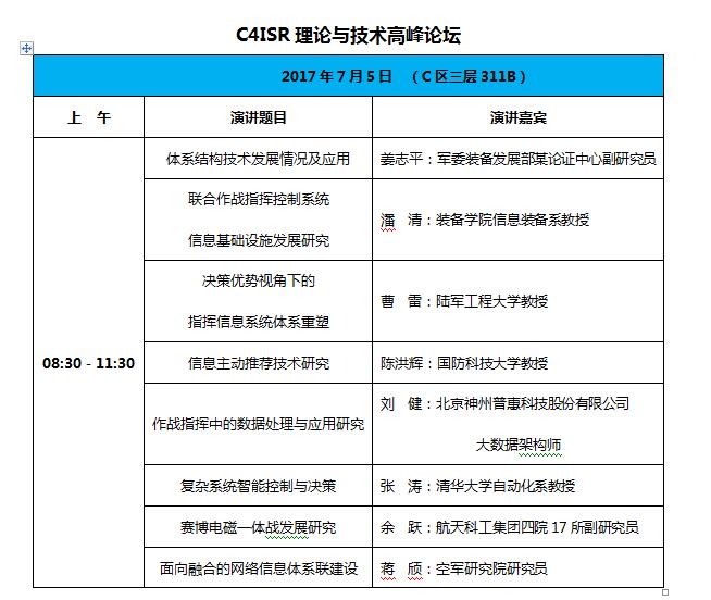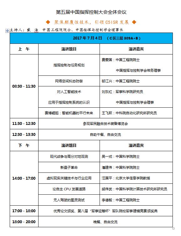 如何澄清模糊認識,怎麼看待即將來臨的人工智能時代?人與機器的關係,是指揮與控制,還是被指揮、被控制?讓我們尋根溯源,探究指揮控制的賽博起源;展望未來,暢想C5ISR的智能發展。7月3日至5日,第五屆中國指揮控制大會暨第三屆(北京)中國軍民融合技術裝備博覽會在京召開。會上,中國科學院自動化研究所複雜系統管理與控制國家重點實驗室王飛躍主任將會在“賽博崛起:智能機器的平行未來”報告中帶來最權威的闡釋,他對賽博的解讀和對智能機器的闡述,必將給人們以新的啓示。此外,中國指揮與控制學會名譽理事長李德毅院士的“無人駕駛的圖靈測試”、國防科技大學自動化學院戴斌總工程師的“智能科技與無人系統”、空軍工程大學黃長強教授的“智能化無人機系統關鍵技術”、清華大學張濤教授的“複雜系統智能控制與決策”等報告,將從無人駕駛、無人系統、複雜系統等方面,以前瞻眼光探討計算機智能的未來發展,帶給人們新的視角。