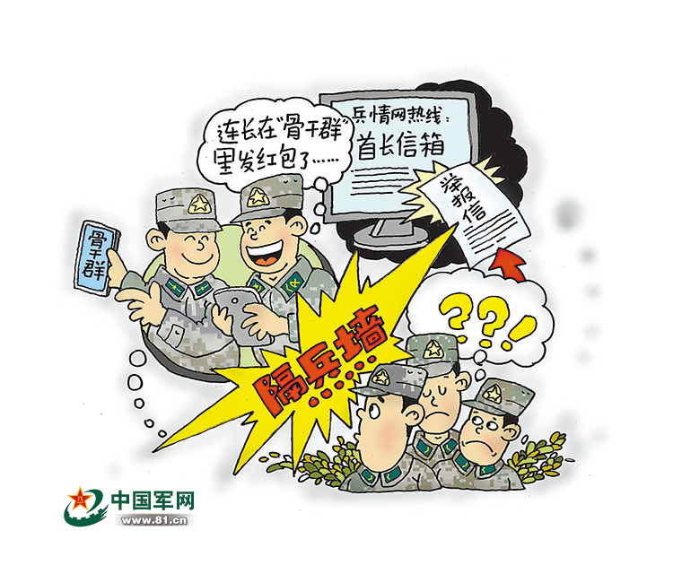 莫要那邊建起羣,這邊脱了羣。在部隊建設中運用“互聯網+”思維,借微信羣等新型社交網絡走近青年官兵,傾聽兵言兵聲,瞭解兵心兵事,這本是好事。但好事就當辦好,倘若考慮不周、方法不當,把微信羣建成“私有領地”甚至“小圈子”,在官兵之間人為立起“隔離板”“離心牆”,則會收到反效果、產生負能量。