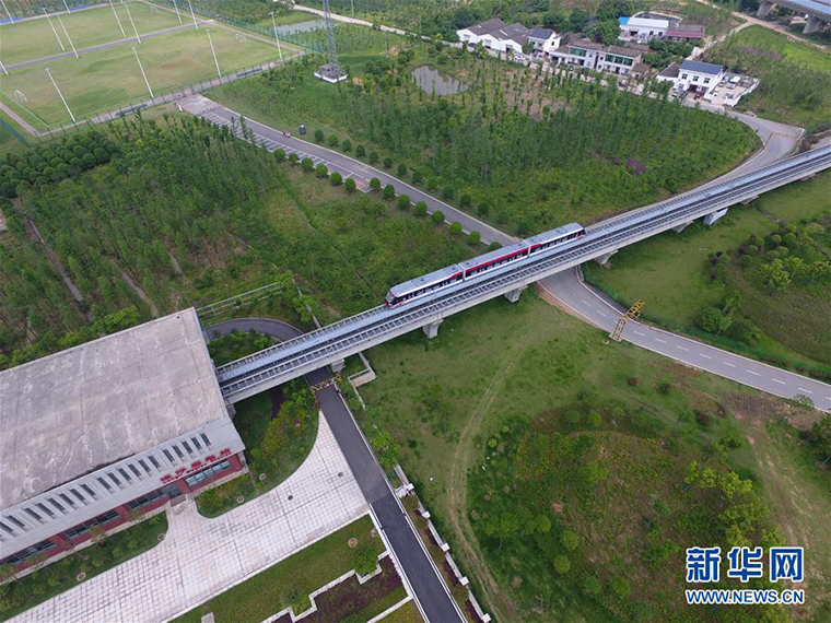 5月8日,國產磁浮列車運行在長沙磁浮快線上。截至目前,已有260萬人次乘坐了這一新型綠色交通工具。張酉龍攝