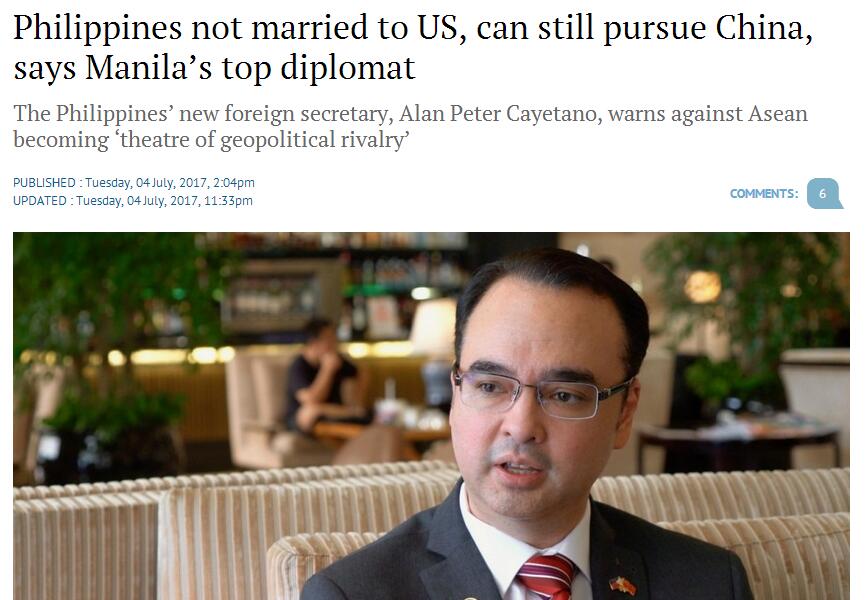但是卡亞塔諾認為,馬尼拉和華盛頓之間的關係並非“夫妻關係”,因此美菲之間的這種關係不應阻止菲律賓追求其他國家,比如中國。