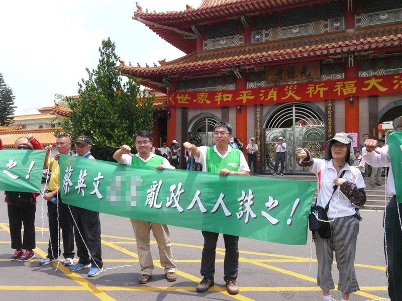 據台灣聯合新聞網消息,針對抗議民眾,警方在光德寺外設置意見表達區。蔡英文在中午時分抵達,抗議人士攜帶布條與鳴笛,高喊蔡英文無能、下台。