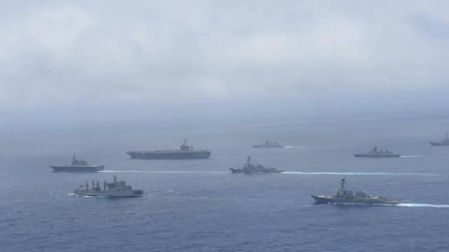 印度NDTV網站9日稱,正當中印在邊境地區對峙時,來自美日印約15艘精鋭戰艦和數十架各式戰機將參加這次規模龐大的演習。其中美國不但出動了“尼米茲”號核動力航母,還有“普林斯頓”號導彈巡洋艦、“霍華德”號、“肖普”號和“基德”號導彈驅逐艦以及一艘“洛杉磯”級攻擊核潛艇參演;“東道主”印度則派出由“超日王”號航母、兩艘隱形護衞艦、兩艘驅逐艦、一艘獵潛艇、一艘“基洛”級潛艇與一艘油輪組成的龐大艦艇編隊;日本參演艦艇則包括“出雲”號直升機航母和“漣”號導彈驅逐艦。《印度論壇報》頗為得意地宣稱,三國艦隊都以本國最強航母率隊參演,是“極為罕見的”,尤其是“超日王”號航母自2013年11月服役後,這還是首次與外國軍艦一同進行全面的戰鬥演習。