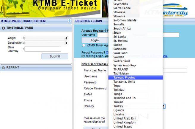 馬來西亞鐵路訂票網站將台灣標註成“中國一省” 網友:沒毛病