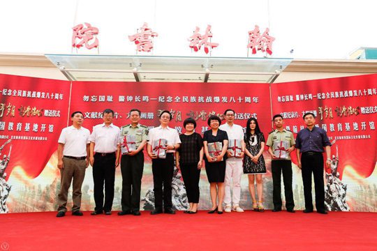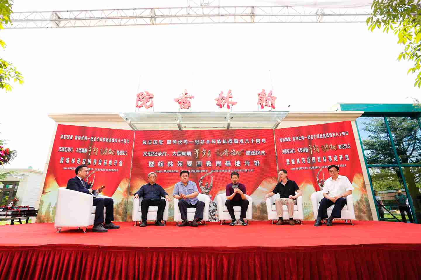(圖片説明:7月11日,為紀念全民族抗戰爆發80週年,由環球網、北京翰林苑國際文化傳播有限公司聯合主辦的“文獻紀錄片、大型畫冊《那歲月刻骨銘心》贈送儀式暨翰林苑愛國教育基地開館”活動在北京舉行。)