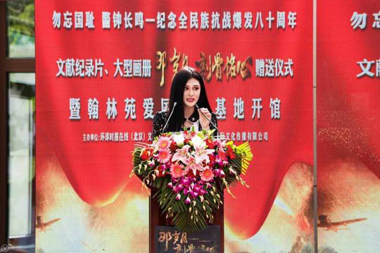北京翰林苑國際文化傳播有限公司董事長、《那歲月刻骨銘心》紀錄片出品人林虹是在海外留學歸國的年輕女士,談起80年前那段歷史,林虹説,“我的爸爸是一位商人,但他還曾經是一名戰士,是一名在和平年代親歷過前線戰火和犧牲的真正的戰士,可以説,戰士的精神基因融入了他的血脈。所以,在老兵爸爸的影響下,無論腳踏祖國的大好河山還是求學於遙遠的異國他鄉,我的骨子裏的那份家國情懷一直銘記於心。”林虹在致辭中説,“作為公司負責人和文獻紀錄片《那歲月刻骨銘心》的出品人,我認為,一家成功的企業不應該只是追求物質生活的豐富,更要有精神的持守。我願意將翰林苑愛國主義教育基地當作一個陣地,我願意作為排頭兵,傳承這種燃燒的激情和不滅的意志!”