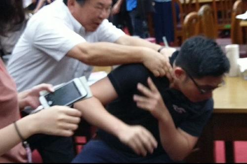 台灣藍綠民代為搶主席台爆肢體衝突 有人受傷流血