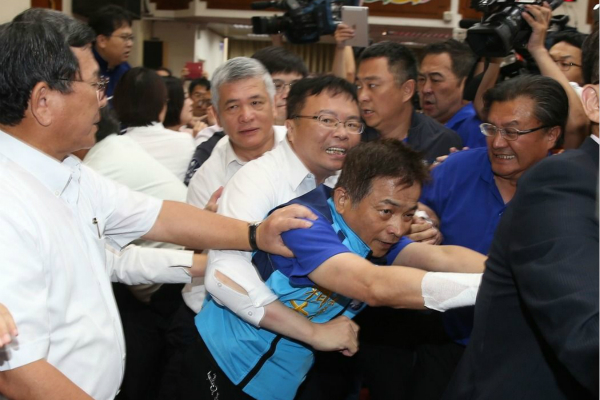 台立法機構連續三次打羣架 “綠委”掐住“藍委”脖子