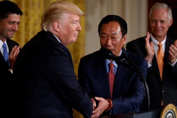 據悉,郭台銘作為台灣企業家,是和白宮主人同開記者會的第一人,全球企業面對特朗普主政下的美國,在投資美國上郭台銘也積極響應,且拔得頭籌,享有白宮專辦記者會的高規格待遇。