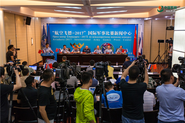 中國軍網長春7月28日電 記者董兆輝、特約記者楊盼報道:由中國空軍首次承辦的“航空飛鏢-2017”國際軍事比賽28日在吉林省長春市召開新聞發佈會。中國空軍副參謀長李春潮少將、俄羅斯戰略戰術航空兵備戰主任馬科維茨基少將、中國空軍參謀部訓練局副局長顧盛冬上校、空軍裝備部綜合計劃局副局長董海平大校、北部戰區空軍副參謀長呂維波少將和空軍航空大學訓練部部長喬增強大校參加了發佈會,介紹相關情況並回答了記者提問。