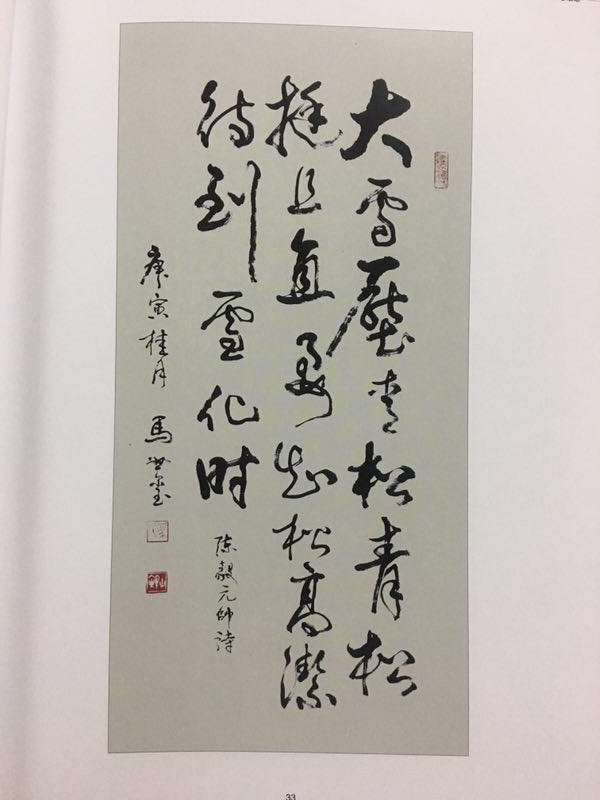 馬先生的父親是鄉間私塾先生,又寫得一筆好字,過春節為鄉親們寫對聯自然義不容辭。這件事一般開始於年前半個月。每天早飯後,馬世璽及幾個小夥伴就忙開了:研墨、展紙,將父親寫好的對聯棒到場院地上,四角用小石頭壓好,晾乾後按家按户一份份捲起來。他早早就顯露出書法方面的天分,他的字很快就趕上了父親。於是,這份令小夥伴們眼饞的差事就轉到他手上,得到鄰居們的誇讚。