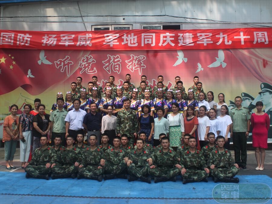軍愛民,民擁軍,軍民團結一家親。7月25日下午,一場由軍地聯合舉辦的同慶建軍九十週年聯歡會在十三年中隊營區舉行。聯歡會現場,氛圍熱烈,掌聲陣陣,軍地雙方都傾情上台,一個個精彩的節目編織出了一張張軍民連心圖,官兵在歡快的舞蹈和動聽的旋律中,度過了充實愉快的下午。