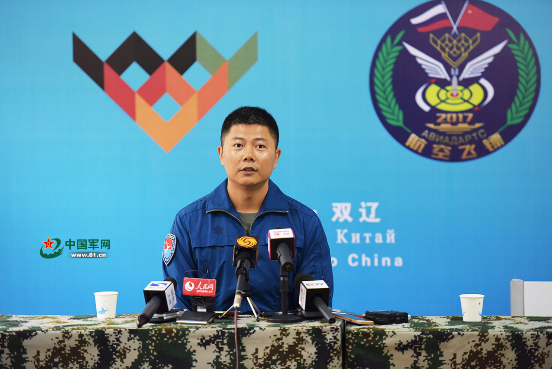 作為轟-6K參賽指揮員,身着飛行員服的王欣身材高大、體型健壯,果真與轟炸機的外型很是匹配。面對記者諸多問題的“狂轟濫炸”,王欣笑呵呵地表態:我們有能力有信心取得好成績!