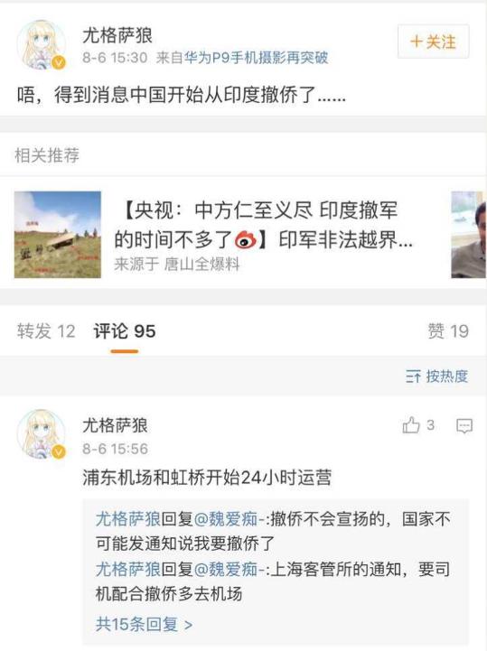 “唔,得到消息,中國開始從印度撤僑了。”昨天,類似的消息在新浪微博上流傳,加上近來中國各大官方機構頻繁喊話印度,類似“消息”在互聯網上引發對中方“撤橋備戰”的聯想。但有消息人士向環環*(ID:huanqiu-com)*透露,雖然確有在印中資企業有私下撤離部分人員的情況,但與當前中印局勢關係不大。