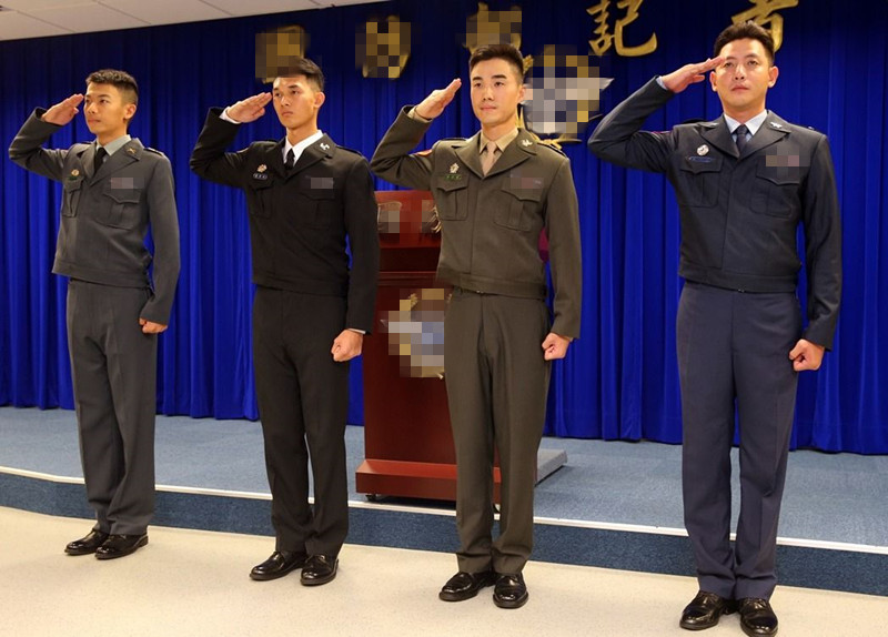 台軍新式夾克(艾森豪威爾式短夾克),依序從左至右陸軍、海軍、海軍陸戰隊、空軍。(圖片來源:台灣“東森新聞雲”)
