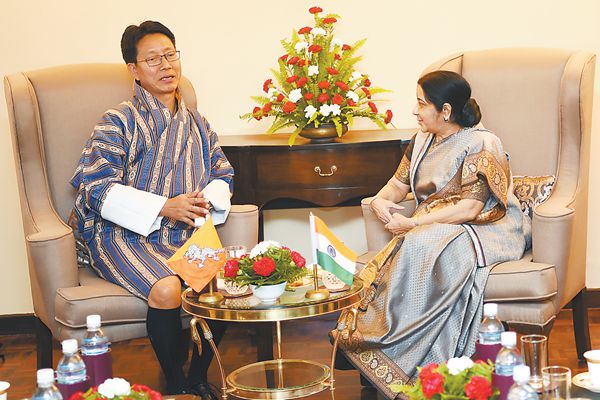 “這是與親密朋友和鄰居在一起的時刻。印度外長和不丹外相在環孟加拉灣多部門經濟技術合作組織會議間隙會晤”,印度外交部發言人在推特上説,並秀出斯瓦拉吉和丹曲·多吉的會晤照片。《印度快報》稱,儘管雙方會晤的內容並未公佈,但此次會晤的背景是中印在洞朗發生軍事對峙。