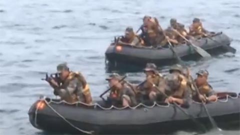 訓練開始,隊員們乘坐衝鋒舟駛向陌生海域,在距離海岸線約3公里處時,攜帶裝被離舟入水。武裝泅渡要求官兵攜帶30公斤重的裝具,負荷大、阻力大,官兵們的體能消耗也是成倍增加。相比武裝泅渡考驗,水上操舟檢驗的官兵技能和協作意識。由於海上風高浪急,橡皮艇在海中極難保持平衡,稍不留神就會發生側翻,操作難度很大。各操舟隊員,必須協力合作,才能確保前進方向。蛙人潛水是特戰隊員在執行海上滲透任務時的常用手段,隊員們要下潛至10米以下水深,並在規定時間內完成向目標地域機動。訓練期間,崖壁攀登、野外生存、叢林穿插等課目相繼展開,全面錘鍊和提高了部隊官兵體能、技能和協同作戰能力。