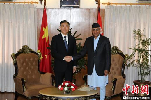 同日,尼泊爾總理德烏帕會見汪洋。他表示,尼方高度重視對華關係,期待進一步加強雙邊務實合作。汪洋表示,中尼務實合作前景廣闊,應不斷擴大貿易投資規模,穩步推進交通基礎設施、災後重建等項目建設,拓展農業、能源合作,促進人文交流,在旅遊、醫療衞生、人力資源培訓等領域加強合作。