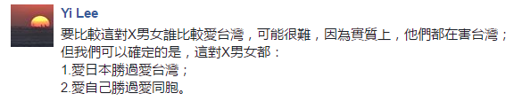對此,台灣網友並不認同,紛紛表示,“他們兩人都在害台灣,根本就是一丘之貉”,“他們愛日本勝過愛台灣,愛自己勝過愛同胞”。