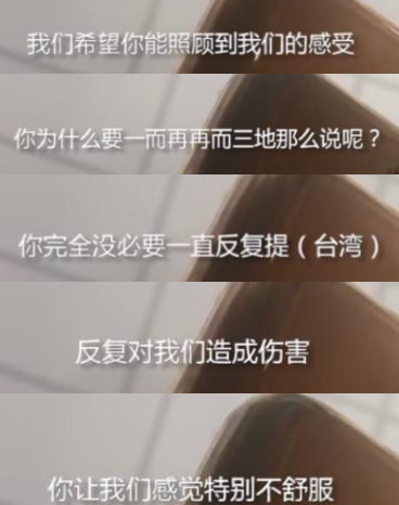 交談中,Jesse向講師表達了自己以及其他中國學生的不滿,並同講師展開了一番激烈的爭辯。Jesse認為,講師應該尊重學生的感受,她還質疑講師,為什麼要一而再再而三地提“台灣”,“你讓我們感覺特別不舒服”。