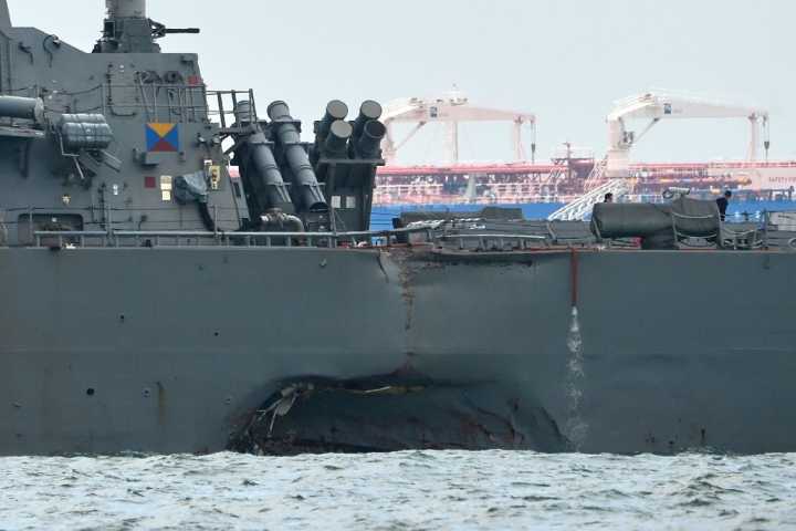 美國海軍導彈驅逐艦“約翰•麥凱恩”號8月21日清晨在新加坡附近與一艘油輪商船發生碰撞,導致5名船員受傷、10餘人失蹤。隨後,美國海軍下令艦隊在全球暫停行動,進行評估,檢查漏洞。對於美軍艦三個月之內在亞洲發生兩起碰撞的事件,法新社8月22日援引海軍專家的話分析稱,這令人質疑美國海軍在亞洲是否過度擴張,美國需重新考量“自由航行”行動。