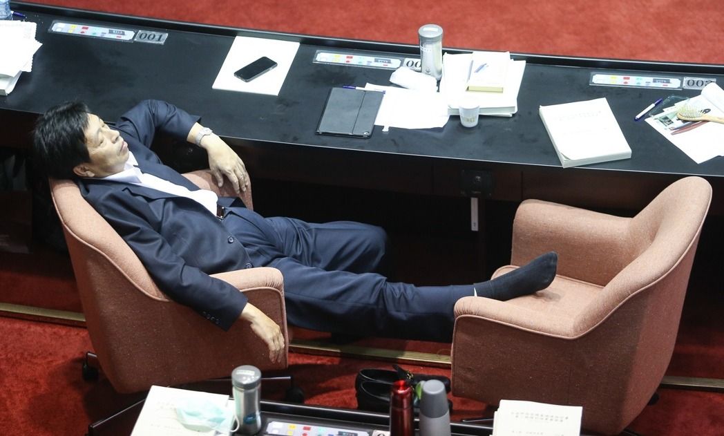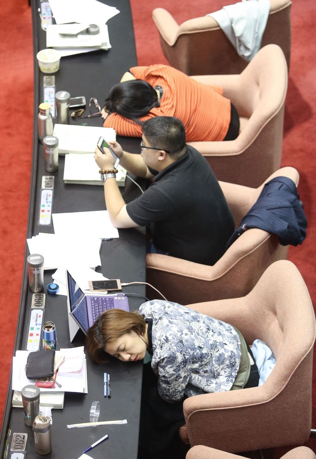 台“立法院”上演徹夜表決戰:有人體力不支翹腳癱睡