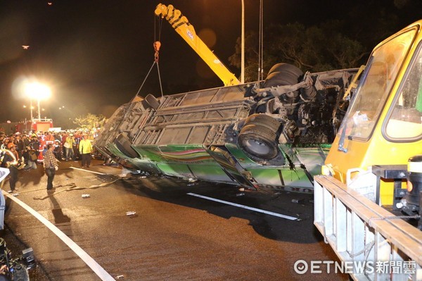 今年2月,台灣蝶戀花旅行社遊覽車翻車,致使包含司機在內的33人死亡。(來源:台灣《東森新聞雲》)