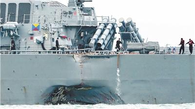 8月21日早上,隸屬美國海軍第七艦隊的“約翰·麥凱恩”號導彈驅逐艦在新加坡東部海域與一艘商船相撞,事故造成10名船員死亡、5人受傷。就在兩個多月前,同屬美國海軍第七艦隊的“菲茨傑拉德”號導彈驅逐艦在日本橫須賀港附近也釀成了一起類似的嚴重事故。除此之外,5月9日,美國海軍導彈巡洋艦“尚普蘭湖”號在朝鮮半島附近和一艘漁船相撞。1月底,美國海軍巡洋艦“安堤坦”號在東京灣擱淺。