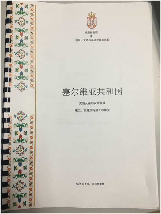 塞爾維亞政府發給中國記者關於基建領域投資的中文冊子,厚達72頁,足見塞政府對中國的重視。