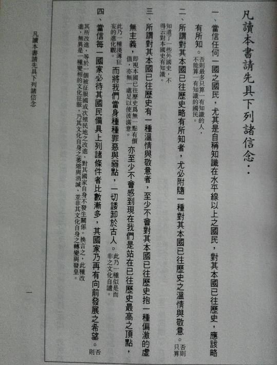 一、當信任何一國之國民,尤其是自稱知識在水平線以上之國民,對其本國已往歷史,應該略有所知。(否則最多隻算一有知識的人,不能算一有知識的國民。)
