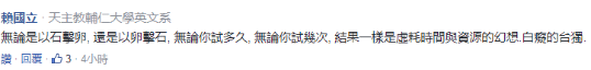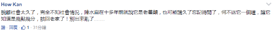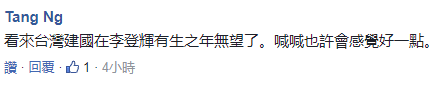 還有憤怒的網友表示,“看來‘台灣建國’在李登輝有生之年是無望了,喊喊也許感覺好一點”,“脱離社會太久,完全不知道社會情況,陳水扁在十多年前就説他是老蕃顛,也許講久了忘記時間了,何不送他一個鐘。”