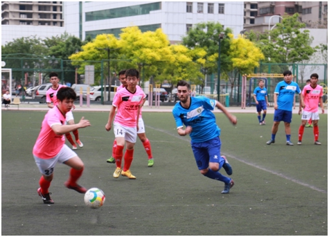 來自意大利的羅博特(中間藍色隊服),現就讀於天津外國語大學