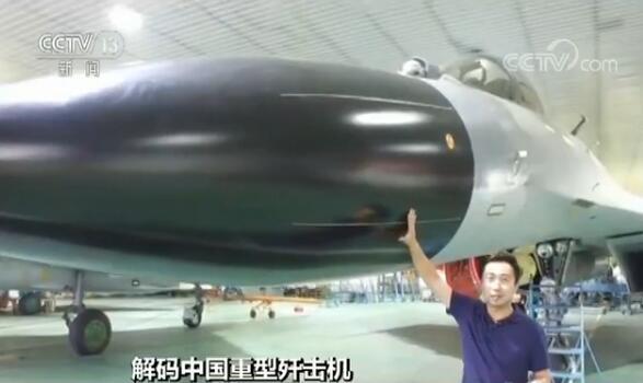 央視記者 吳傑:這裏是航空工業沈飛的試飛站機庫,在我身後,就是我們國家自主研製的重型殲擊機殲11B,它的最大起飛重量可以達到三十噸左右,可以説是一架名副其實的空中巨鷹。