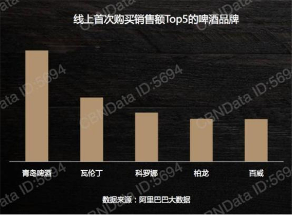 數據顯示,在線上首購最受歡迎的啤酒品牌TOP5中,青島啤酒高居榜首,是消費者最喜歡購買的啤酒品牌。