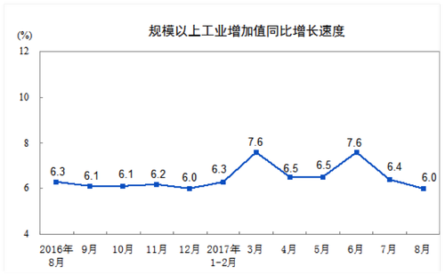 “雖然工業生產有所放緩,但不管同比、環比來看,目前的增長應該説是比較穩定的增長。”國家統計局新聞發言人劉愛華分析,從累計增長看,1-8月,規上工業增加值同比增長6.7%,與去年同期相比,還是有較大幅度的提升,加快了0.7個百分點。從環比來看,8月工業生產環比增長0.46%,比7月加快了0.05個百分點。即便是8月當月這個6%的同比增速,也仍處在近兩年來的增長區間內。