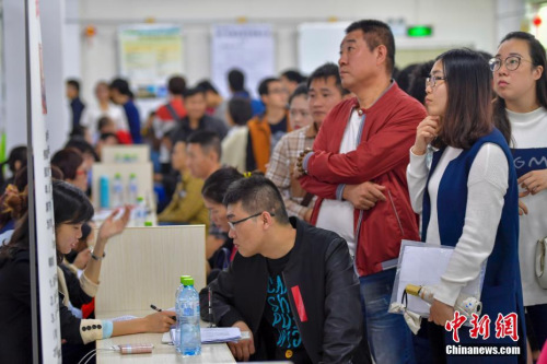 資料圖:2月8日,2017年海南省新春首場特大型招聘會在海南省人力資源市場舉行,吸引了眾多求職者前來入場求職。中新社記者 駱雲飛 攝