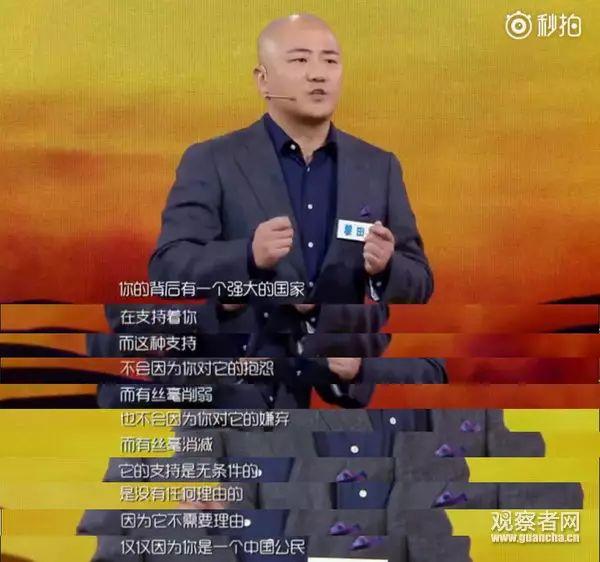 “她的支持是無條件的,是沒有理由的,因為她不需要理由,僅僅因為,你是一箇中國公民!”
