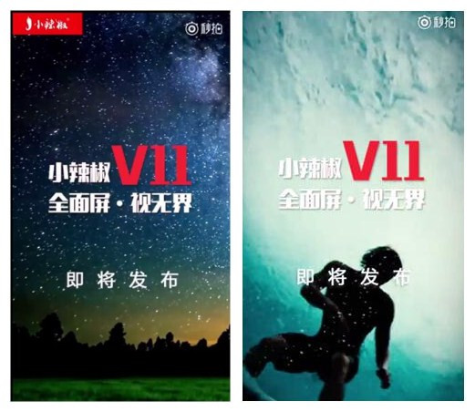 另外,小辣椒這兩天連續發佈了兩款V11預熱視頻為新品造勢!前天的視頻背景是廣闊無垠的星海,象徵人類對未知世界的探索;昨天曝光的視頻是以衝浪極限運動為背景,畫面由小變大感逐步遞進,充分展示手機“全面屏”的特點,末尾一句“小辣椒V11全面屏視無界 即將發佈”更是點睛之筆。兩波視頻預熱之後,接下來就是新品發佈了。