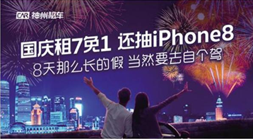 國慶黃金週即將到來,租車、專車需求大幅增加。今年,神州專車進一步擴大旅遊城市佈局,拉薩、麗江、九寨溝、遵義、嘉興等新增旅遊城市的專車需求預計會比較火爆。另外,租車市場也已提前開啓預熱,用户在9月30日-10月8日任意1天租車,可使用租7天免1天優惠券,10月6日-12日期間租3天以上還可以享8折優惠。每個下單用户都有機會抽取iPhone8、無人機和卡西歐電子錶。與此同時,國際租車用户通過神州租車可租用全球6大洲150多個國家的車輛,歐美澳等市場火熱區域可打8折。