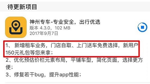 據瞭解,神州租車與神州專車同為神州優車集團旗下出行板塊業務。神州專車為國內出行行業領導品牌,以“專業車輛、專業司機”的模式提供高品質出行服務,佔據專車市場份額40%。神州租車為國內最大的汽車租賃企業,目前車隊規模超過10萬輛,覆蓋300個城市,可提供免費上門送取車、異地換車、不計免賠、24小時救援等各項服務。今年神州租車新增3萬輛新車,用户租到1年內新車的概率超過50%。此外,租車新用户還可領取150元新人禮包。