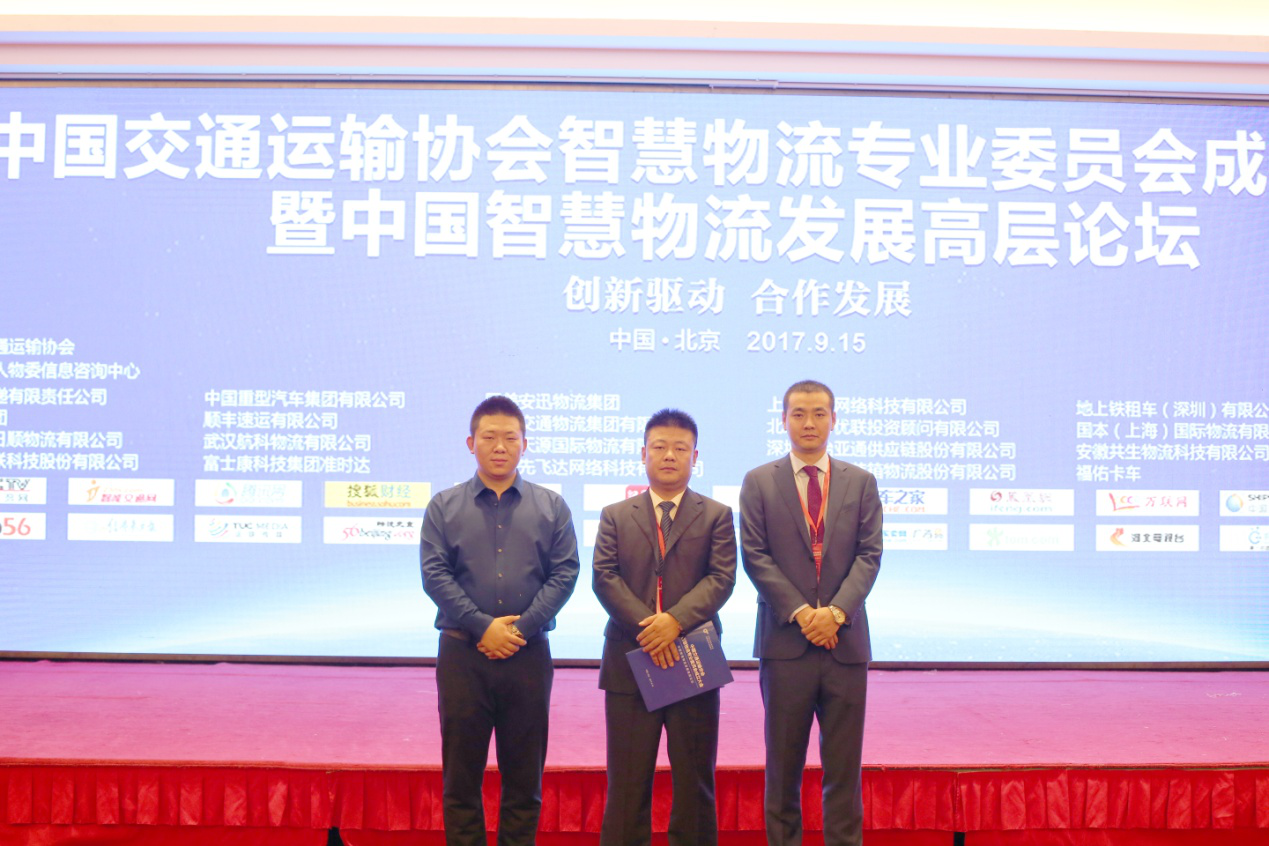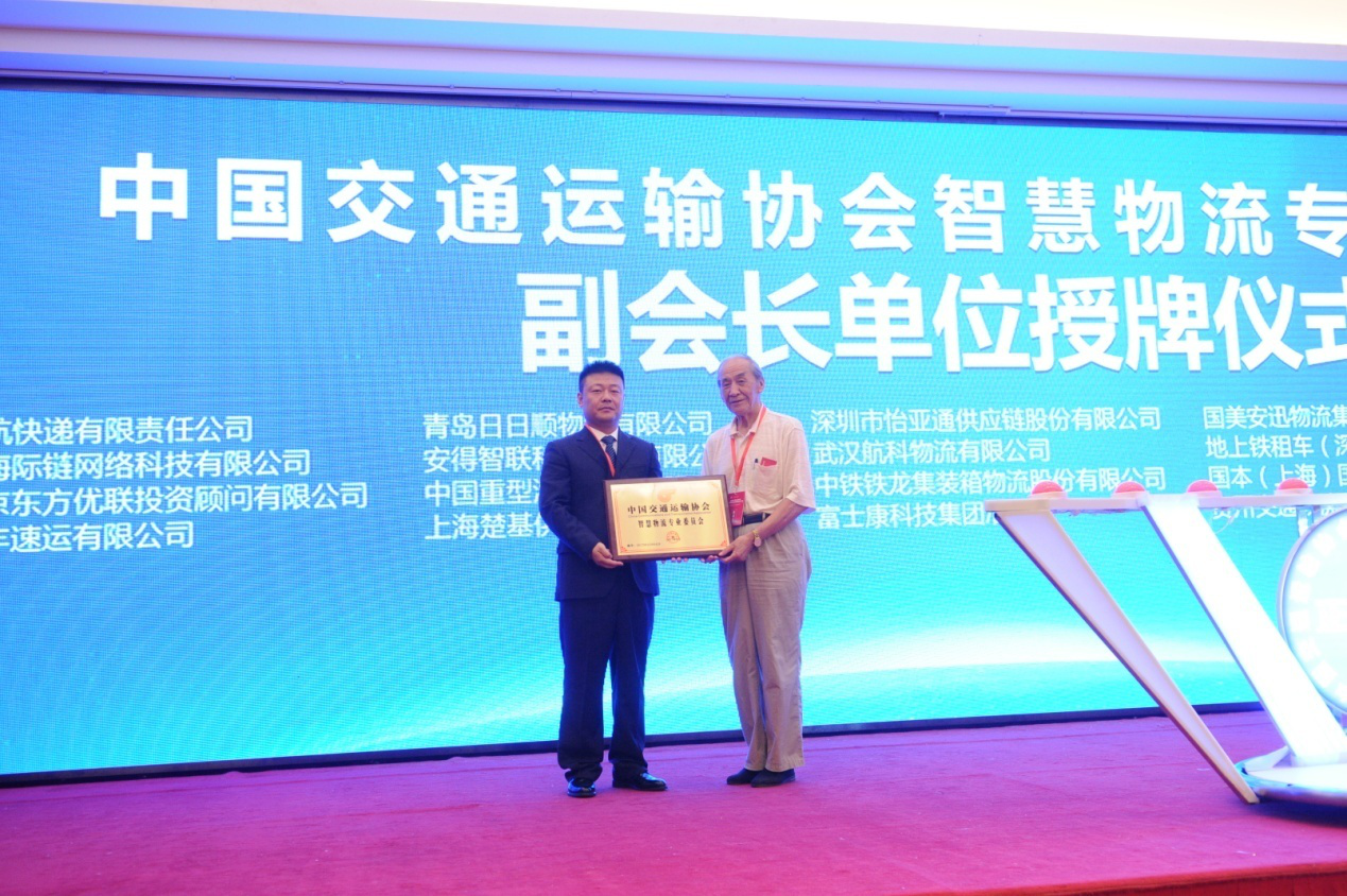 中國交通運輸協會常務副會長王德榮先生為智慧物流專業委員會當選秘書長辦法“中國交通運輸協會智慧物流專業委員會”牌匾。