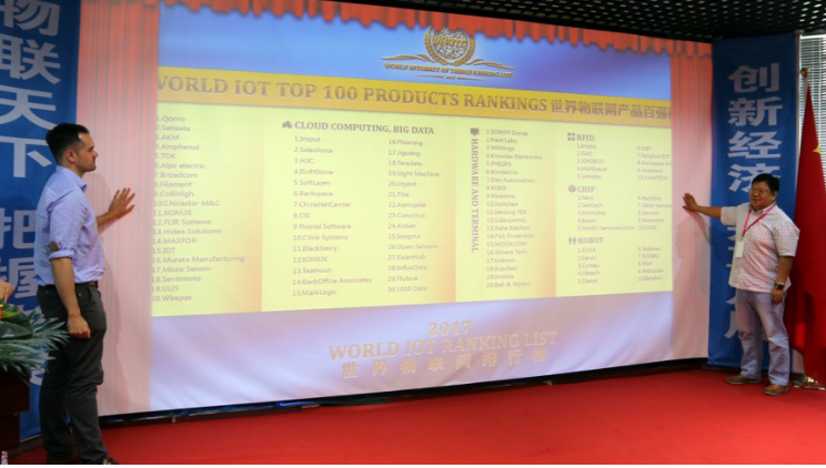 世界物聯網排行榜由全球知名的物聯網組織——世界物聯網大會(WIOTC)與中國、德國、俄羅斯等多個國際組織聯合創辦。在全球數千家企業中,薦選了1000多家企業入圍,華為、思科、博世、谷歌、中國電信、SAP、亞馬遜等400家企業榮登首榜 (登錄www.wiotc.org瞭解)。世界物聯網百強榜是由來自中國、美國、德國、法國、俄羅斯、瑞士等國家和地區的國際組織、商協會領導、專家學者等46人組成的評委主席團,本着公平、公正、公開的原則,按照各榜指標評分,經初選、細選而產生的排行榜排名,並面向社會公示3個月,接受企業和社會意見。清華大學吳建平教授稱讚其為“最具全球性的物聯網排行榜”。