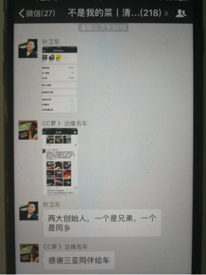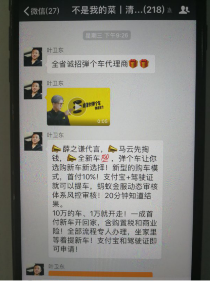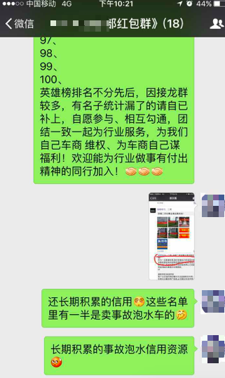 2、 不正當的利益訴求。葉某某打着為車商謀利的旗號,向優信索取如貸款手續費、利息返點、保險返點等費用。葉在其組建的二手車商羣中表示,“正在和優信合作的同行可以考慮暫停,要懂得取捨,可能由於你暫時的舍,而在不久的將來會取得更大的獲益”。若優信向葉某某妥協,可以想見,增加的成本也將轉嫁給到海南消費者。