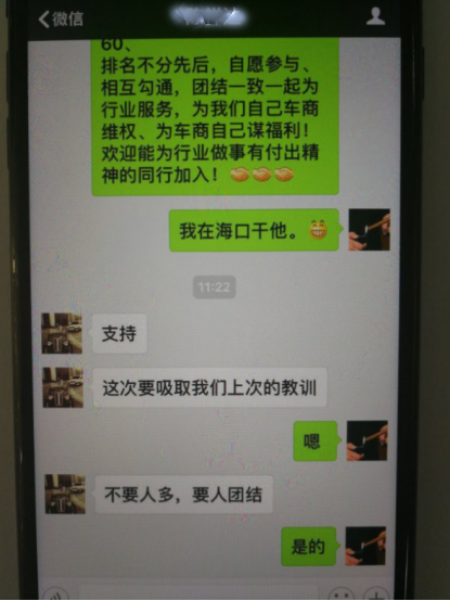 筆者走訪海南發現,目前,海南絕大多數車商與優信合作如常,只剩海口車商葉某某在其二手車商羣中繼續鼓動抵制,但響應者已寥寥無幾。據筆者瞭解,葉某某此次抵制優信有以下主要目的: