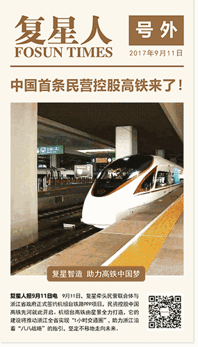 9月11日,由復星集團牽頭的民營資本聯合體與浙江省政府簽約杭紹台鐵路PPP項目,中國首條民營控股高鐵正式落地,打破長期以來鐵路建設領域民營社會資本看得到進不去的投資“玻璃門”,中國鐵路投融資體制改革邁入新階段。