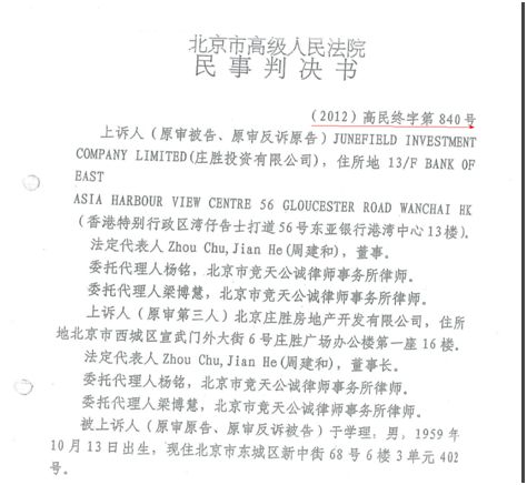 於學理説,“目前北京莊勝資金鍊異常緊張。3月27日,最高人民法院判決,“國安府”的操盤方,信達置業向北京莊勝返還莊勝二期的6幅地塊,並解除信達投資與北京莊勝簽訂的協議,信達投資還需要支付10億元的違約金。除此之外,北京莊勝還要向信達投資支付當年土地對價款、豁免債務共計超過40億人民幣。但莊勝根本沒這個經濟實力。據我所知,北京莊勝欲急於用高院的判決來實行融資,已達到收回莊勝二期的目的。“