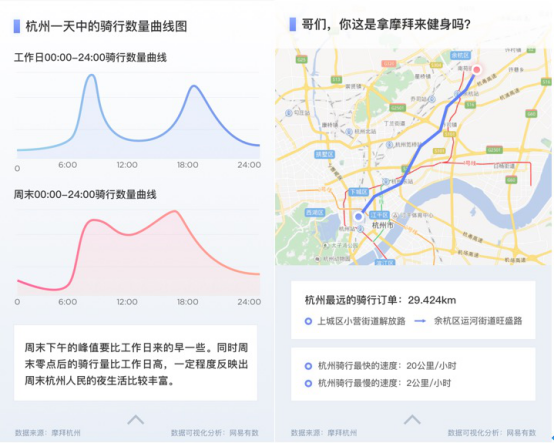 據瞭解,該報告的基礎數據來源於摩拜單車,同時運用網易雲旗下企業級大數據可視化分析平台“網易有數”進行了數據可視化分析,最終呈現出清晰的報告。
