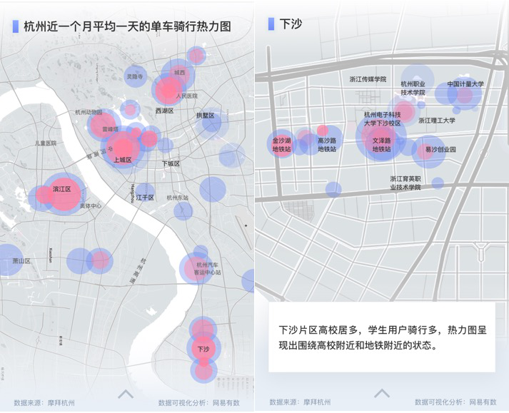 根據網易雲、摩拜單車發佈的《杭州城市騎行大數據》(下稱報告)顯示,杭州最熱門的騎行區域位於西湖東邊及南邊、古翠黃龍一帶、濱江地鐵沿線、下沙學校集中區等。