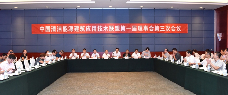 中國清潔能源建築應用技術聯盟第一屆理事會第三次會議於2017年9月18日在廣電國際酒店召開。聯盟理事長王立臣,秘書長金繼宗,聯盟專家委員會主任、中國建築科學研究院環能院副院長路賓、聯盟專家委員會委員、北京市建築設計研究院張傑總工、合肥通用機電產品檢測院郭勇主任、北京建築材料檢驗研究院有限公司谷秀志主任、北京市燃氣及燃氣用具產品質量監督檢驗站蘭濤副站長、天津供熱協會會長姜雪昆、河北清潔能源協會會長田躍文等專家蒞臨會議。