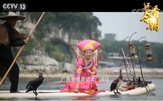 *廣西電視台記者 滿熠:*你來灕江,一定會坐竹排看桂林山水,鸕鷀才是灕江上真正的主人!它們呀,可是捕魚的高手噢。吃魚咯!搶得好快啊。